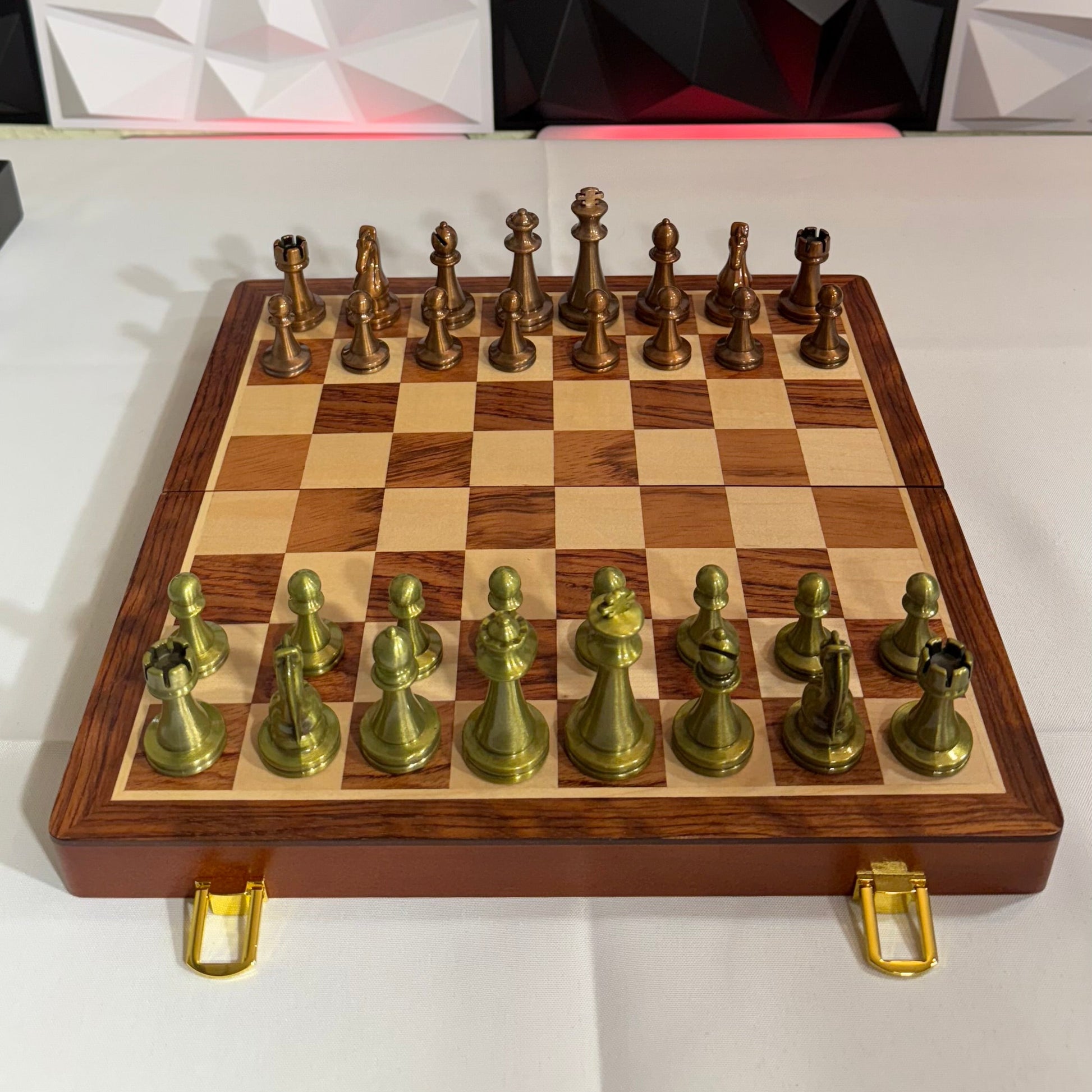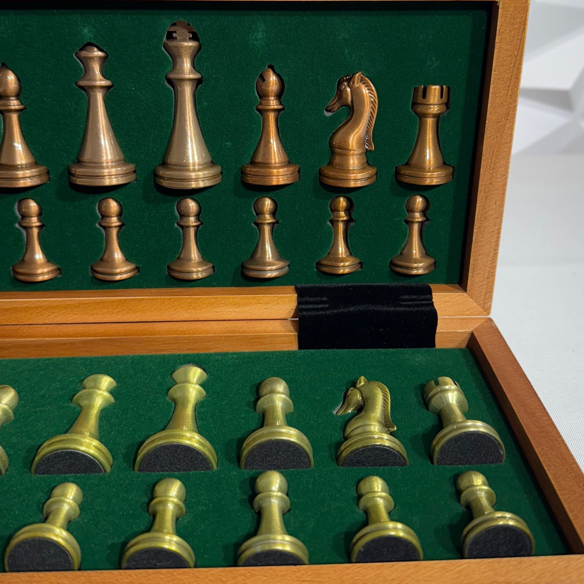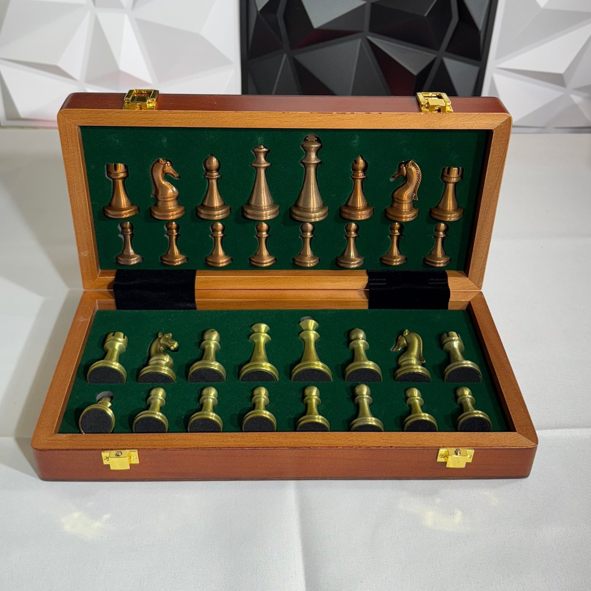Tauler Plegable d’Escacs amb Peces de Zinc i Coure