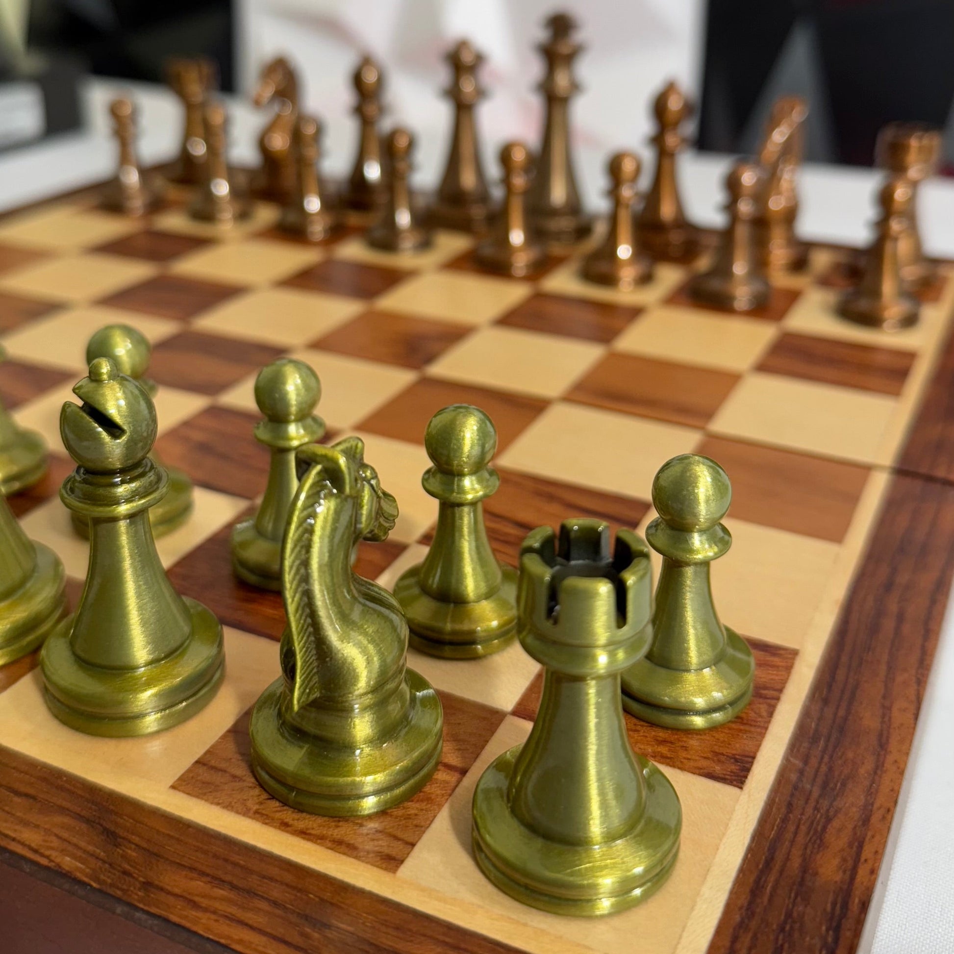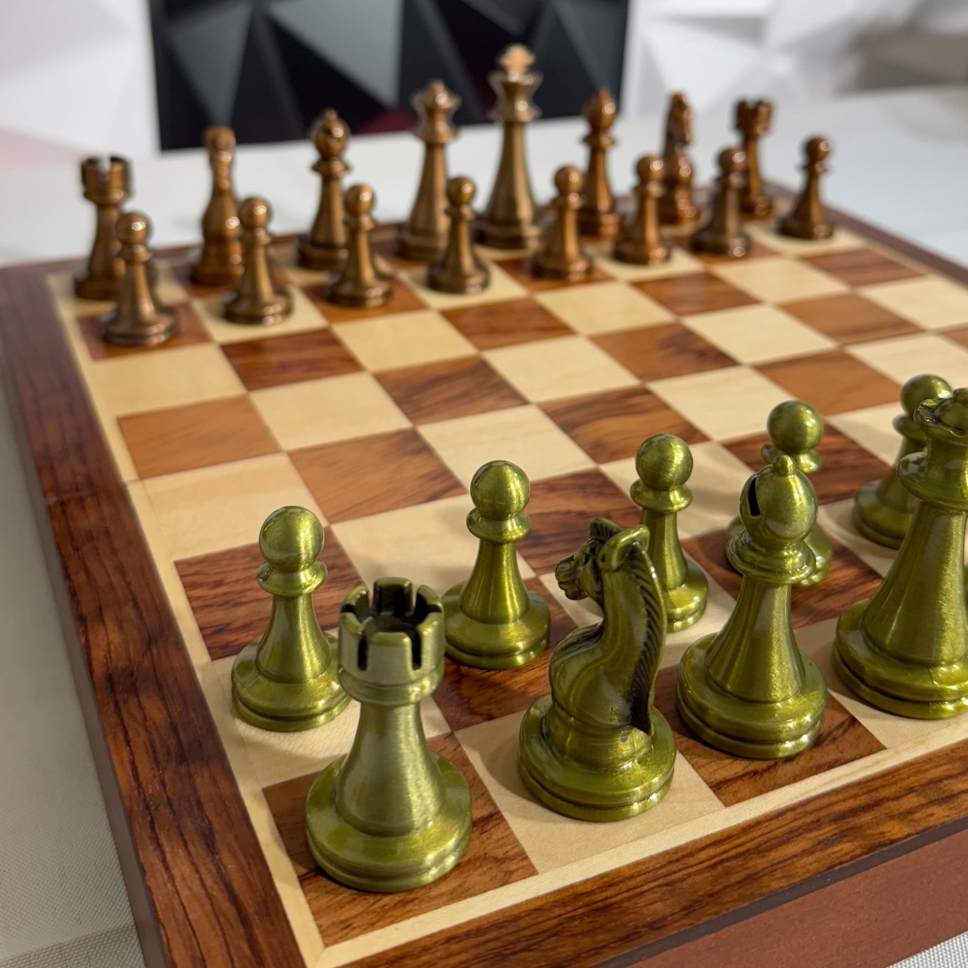 🟤 Peces metàl·liques en zinc i coure – Acabat antic, tacte ferm i pes ideal per a una experiència de joc superior.